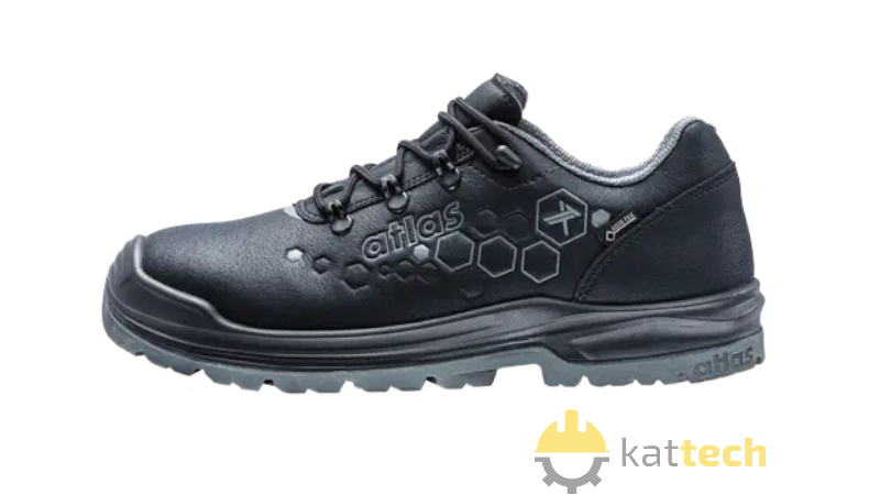 Czarne półbuty marki Atlas. Zrobione z najwyższej jakości materiałów zapewniających bezpieczeństwo, wygodę i komfort nie tylko w pracy ale również podczas chodzenia.