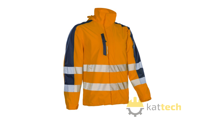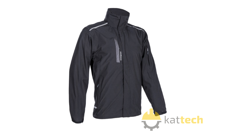 Kurtka softshell posiada wysoki kołnierz, a w tym ochraniacz podbródka. Stały kaptur sztormowy zintegrowany z kołnierzem, centralny zamek pod klapą, 1 zapinana na zamek kieszeń na piersi pod lamówką Oxford, 2 dolne kieszenie zapinane na zamek pod lamówką, 1 zapinana na zamek kieszeń na rękawie pod lamówką oraz 1 wewnętrzna dolna naszywana kieszeń z zamkiem. Kurtka została również zaopatrzona w półelastyczne mankiety i zapięcie na rzep.