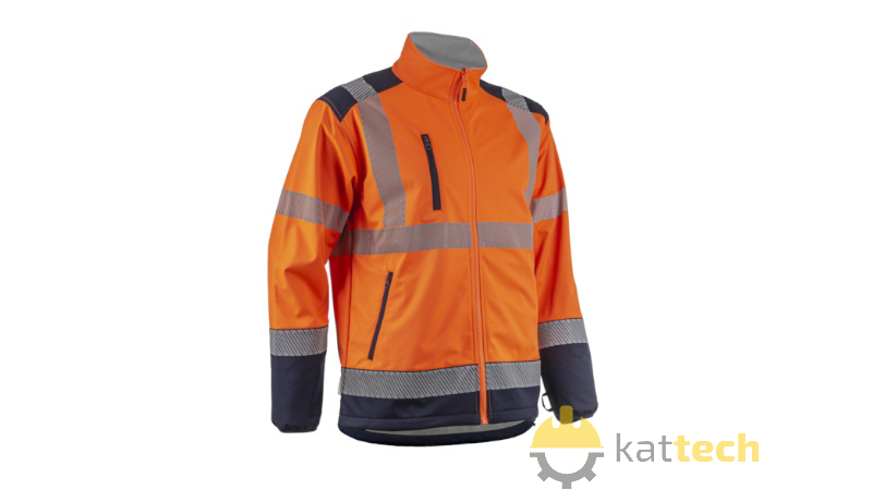 softshell 3 warstwy: 100% poliester + membrana z TPU + 100% poliester mikropolar. 300g / m2 taśmy odblaskowe: paski segmentowe o szerokości 5 cm wodoodporność: 3000 mm przepuszczalność: 800 g / m2 / 24h