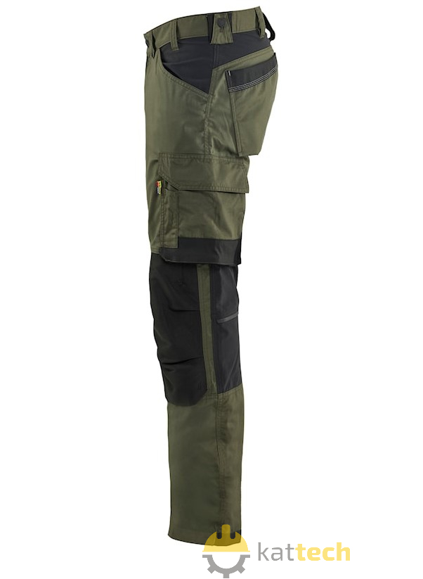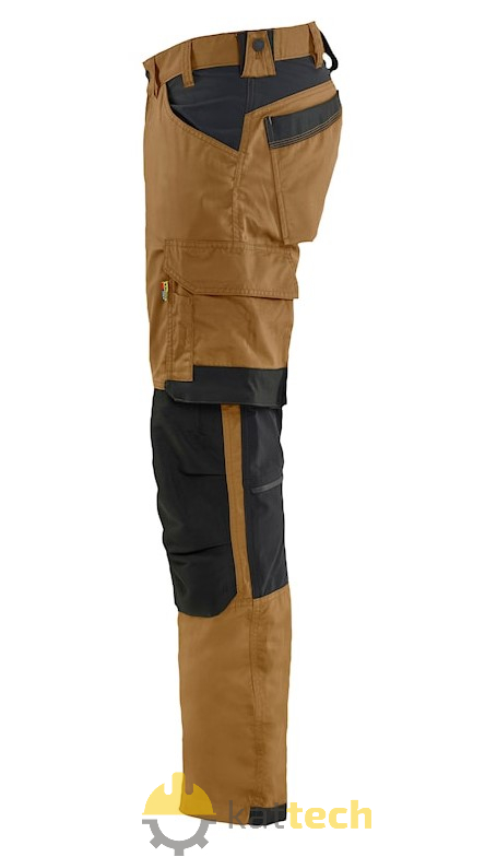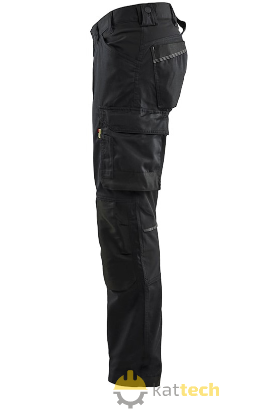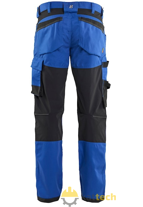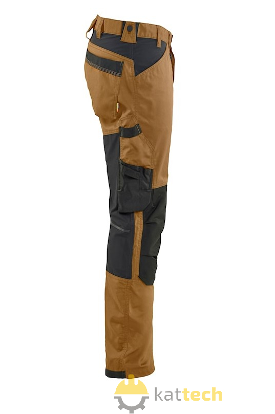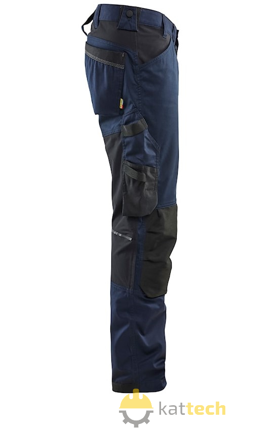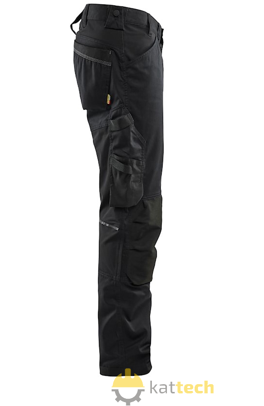 Wygodne, lekkie spodnie robocze z cieńszego 2-kierunkowego stretchu z panelami z 4-kierunkowego stretchu zapewniającego optymalny komfort, gdy jest najbardziej potrzebny. Otwarte ku dołowi kieszenie na ochronne nakolanniki ze stretchem CORDURA®, wzmacniane praktyczne kieszenie, kieszonka na miarkę, kieszenie z przodu i szlufki na młotek zarówno po lewej, jak i po prawej stronie.