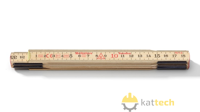 Drewniana miarka składana marki Hultafors z dokładnością do 1 mm. Na miarce czerwonym kolorem zaznaczone są cyfry decymetrowe a czarnym centymetrowe. Konstrukcja z wykorzystaniem szwedzkiej stali gwarantuje niezawodność i trwałość.
