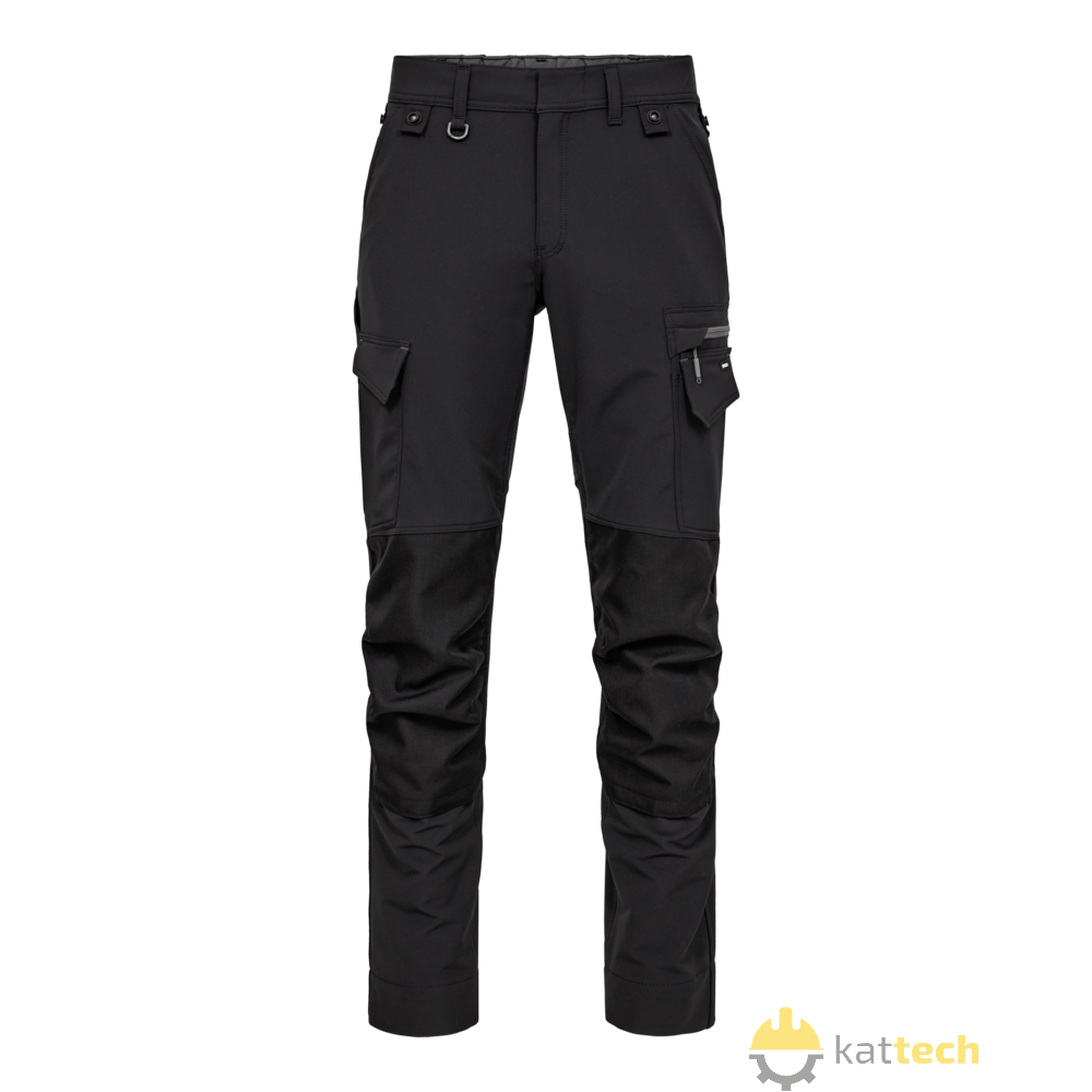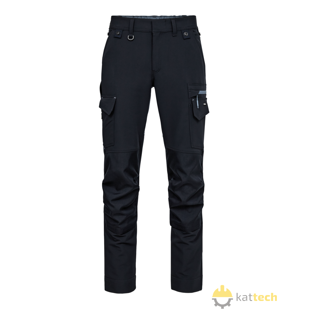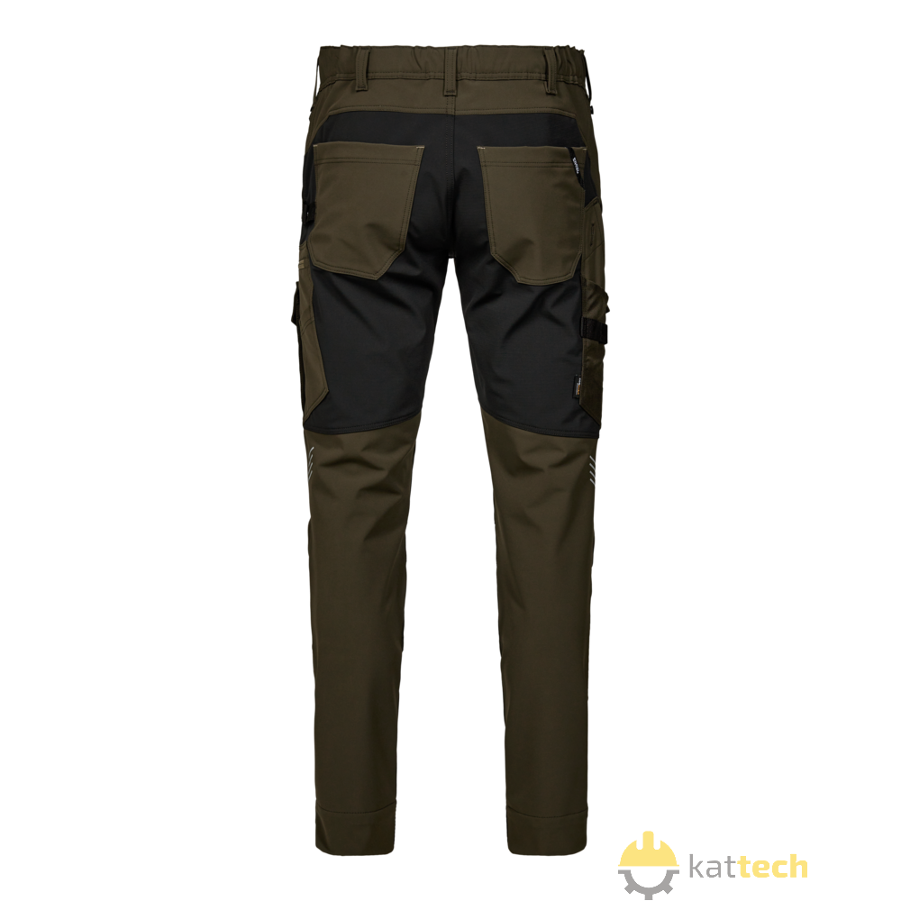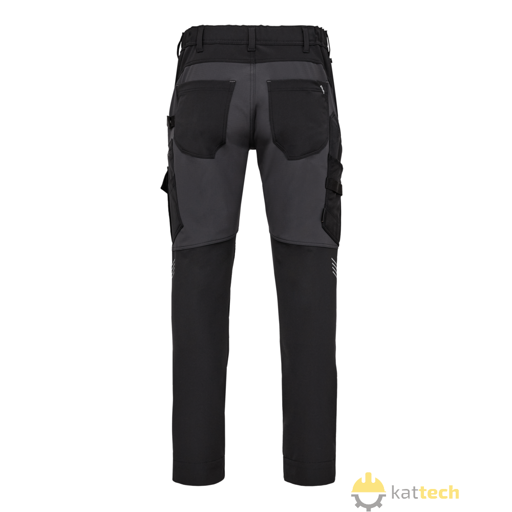 Te spodnie robocze zostały zaprojektowane z myślą o funkcjonalności, trwałości i komforcie, aby sprostać wymaganiom w trudnych warunkach pracy. Wykonane są z wygodnego materiału 4-way stretch, który zapewnia zwiększoną elastyczność, a kontrastowa tkanina Ripstop gwarantuje trwałość i nowoczesny wygląd. Ukryte zapięcie na guziki chroni powierzchnie przed zarysowaniami, a elastyczny tył w pasie zapewnia optymalne dopasowanie, nawet podczas ruchu. Spodnie mają kieszenie na kolanach z wzmocnieniem CORDURA® i zapięciem na rzep, a także dwie opcje regulacji wysokości nakolanników, co umożliwia indywidualne dopasowanie