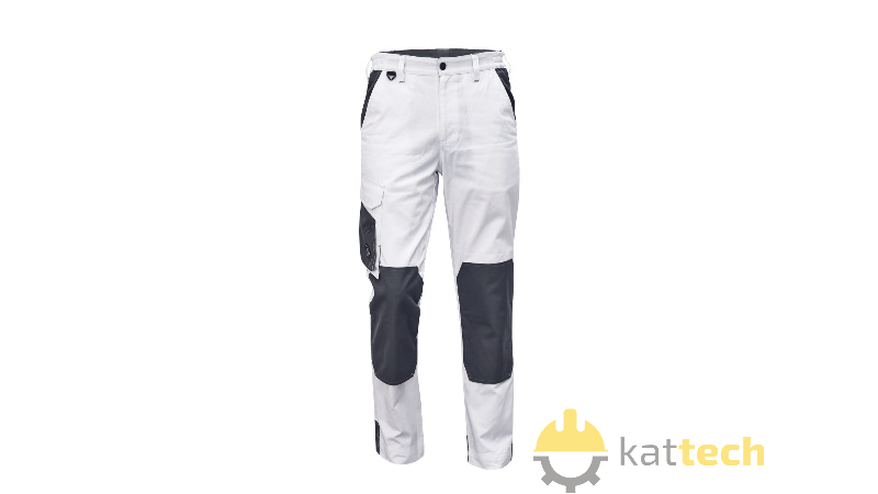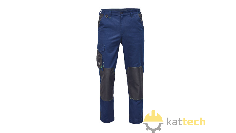 Spodnie robocze o nowoczesnym kroju zrobione z wytrzymałej tkaniny bawełnianej. Posiadają kieszenie na nakolanniki wzmacniane tkaniną Oxford, 2 boczne kieszenie i wielofunkcyjną kieszeń z boku nogawki, tylna kieszeń zapinana jest na rzep, elastyczny pas, pierścień D-ring i możliwość wydłużenia nogawek.