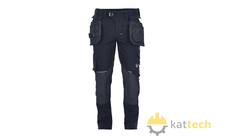 Męskie spodnie robocze z unikalnego materiału TRIFIBETEX PRO® (4way stretch), wyposażone w wielofunkcyjne, odpinane kieszenie. Model ten na kolanach posiada wzmocnienia z materiału CORDURA®, a także paski na narzędzia. Elastyczny pas. Spodnie mają możliwość wydłużenia nogawek i włożenia nakolanników. Odblaskowe detale ton w ton.